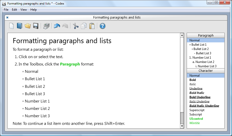 Codex combines the simplicity of a rich text editor with the power of the DITA XML file format, making it dead-easy to create basic DITA topics and maps. Codex-authored content can then be used directly in sophisticated XML publishing processes, eliminating the need for copying and pasting or file conversions. And licensing Codex doesn't require a huge investment, so entire organizations can realize the cost-saving potential of DITA publishing.